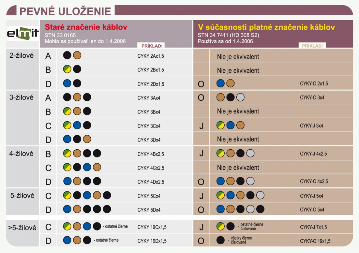 Pomôcka pre elektrikárov - prehľad káblov