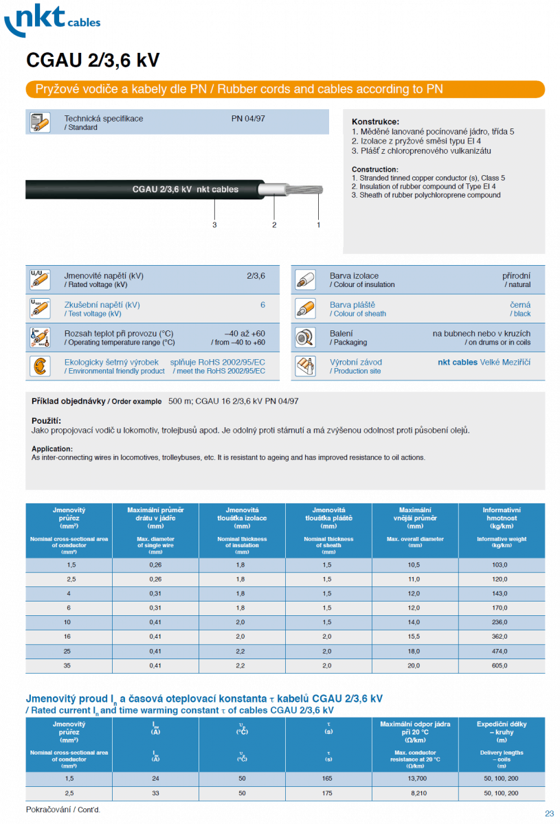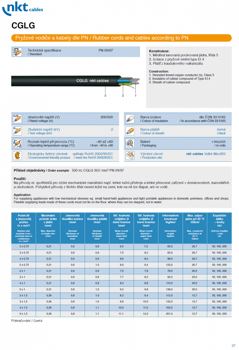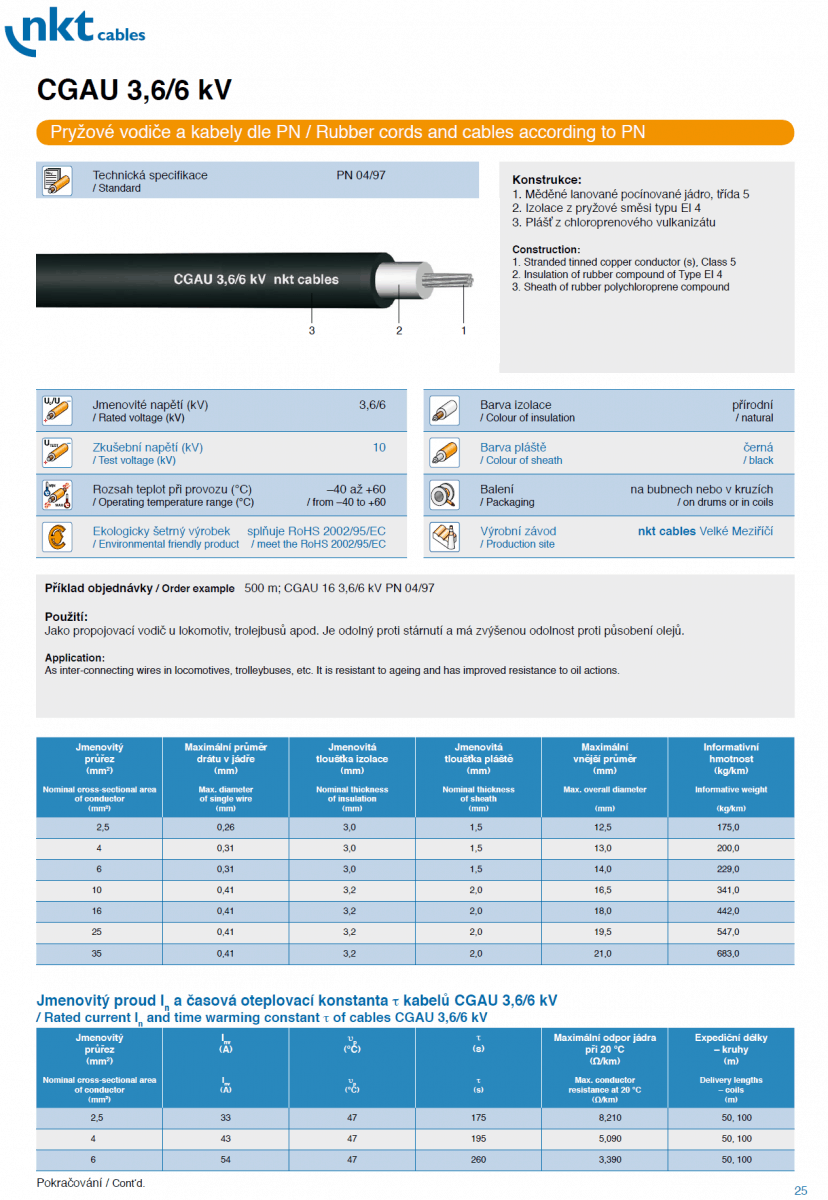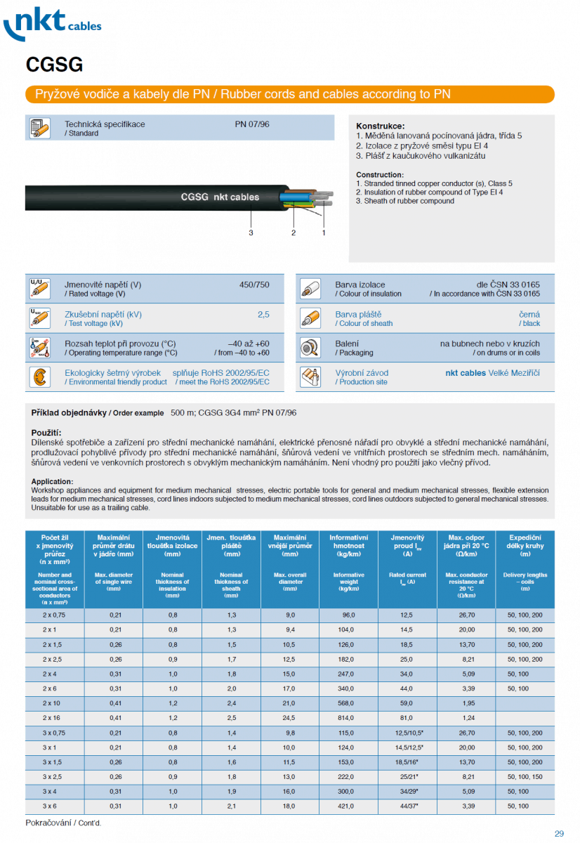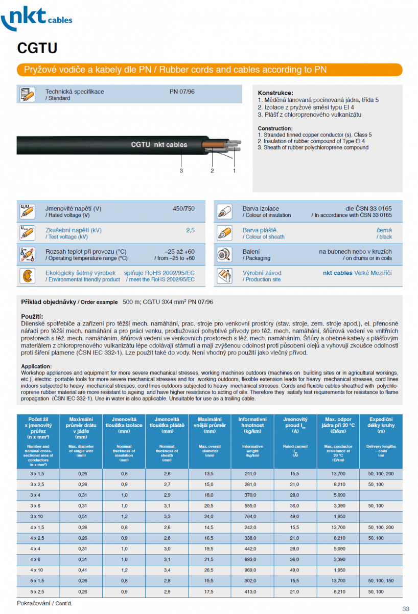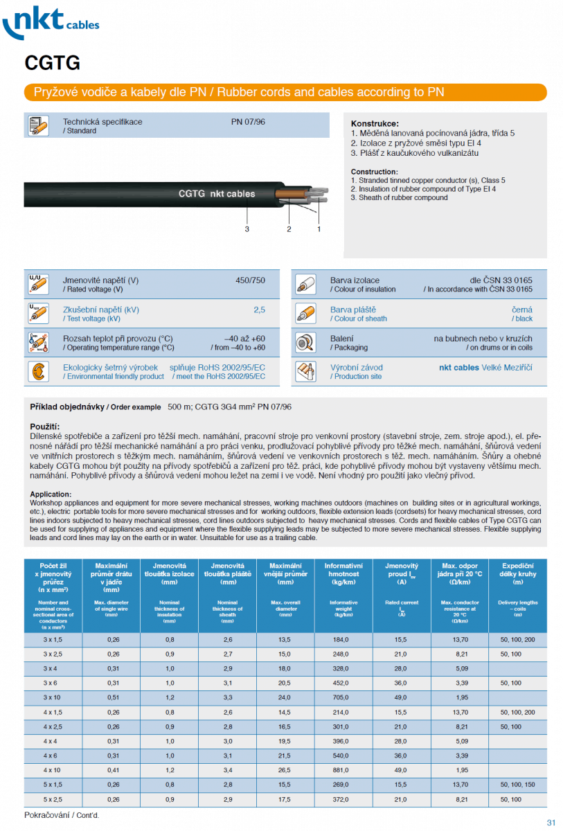 CGTG, CGAU, CGLG, CGSG, CGSGFU, CGTU, CGZ Gumenné – pryžové vodiče a káble