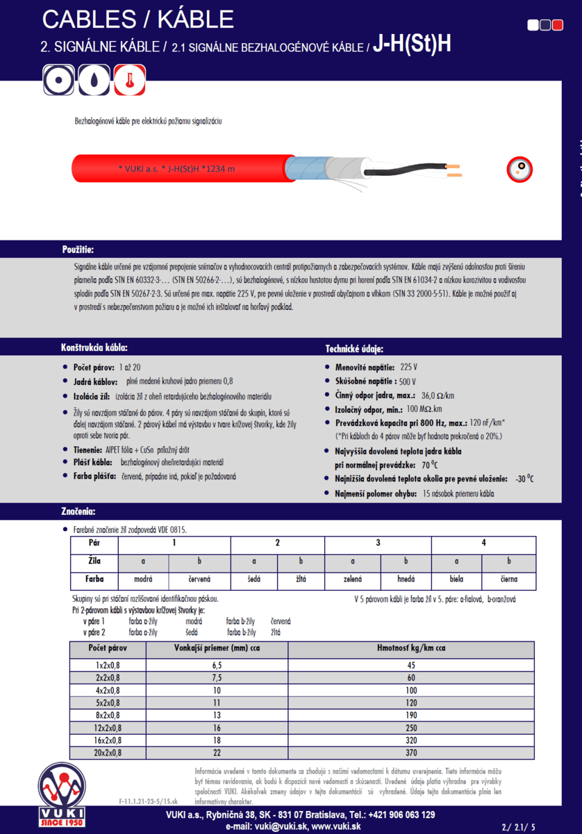Prehľadný zoznam označovanie káblov VUKI s odkazom na PDF parametre: https://www.vuki.sk/standardne-kable